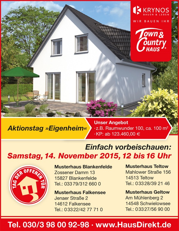 5. Town & Country – Aktionstag unserer Musterhäuser am 14.November!