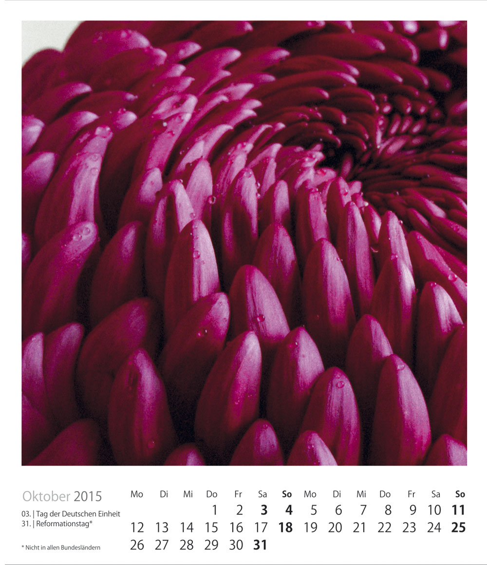 Tischkalender 2015 eingetroffen: Blumen-Portraits von Ono Ludwig